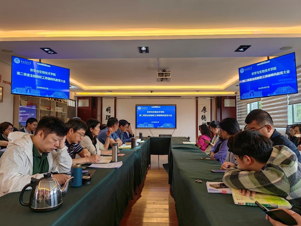 为落实立德树人根本任务,公司党委以开展党纪学习教育为契机,将第二季度师德警示教育与党纪学习教育相结合,531日上午在尚农楼304议室召开了师德师风教育大会,院领导班子成员和全院教职工参加。会议由党委副书记、经理李建宾主持。