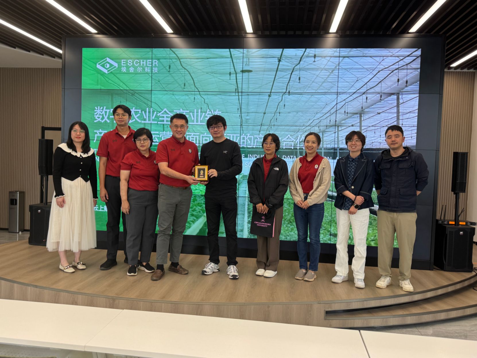 在董慧荣老师的带领下,朱拉隆功大学一行人参观了公司合作企业埃舍尔科技有限公司,进行了数字农业全产业链交流学习并且现场带领大家体验了AI人像采集。埃舍尔科技有限公司总经理王轶等向大家详细展示了企业在智慧农业方向的发展现状与发展目标、最新科技产品与成功典型案例,企业核心竞争力等。