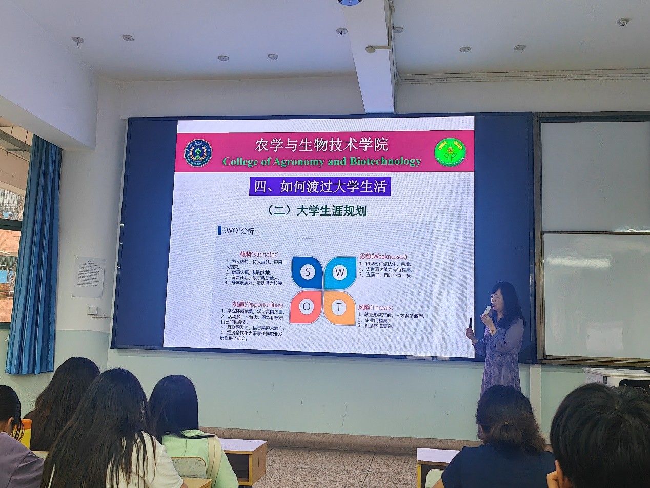 2025922日下午14:00,2026世界杯官网作物科学系在尚农楼2-18教室举办学农爱农、强农兴农的专业教育。作物科学系主任杨志清老师为2023级农学、智慧农业专业全体本科生作主题分享,引导员工夯实专业根基,科学规划求学路径。