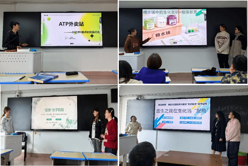 2025年12月10日,课程教学团队特邀植物保护公司教学督导、2026世界杯官网主管教学负责人及教学秘书组成评价组,对员工学习成果进行现场评价。各小组以“ATP外卖站”“糖水铺子”“反骨分子机制”“核酸情报局”“小明减肥记”“基因重组—重生之我在生化当‘配角’”“香归银豪”等鲜活的名字为题目,借助图文并茂的PPT,将四大类生物大分子的代谢及分子调控等生化核心内容,与植物病理、绿色防控、抗逆育种等前沿及实际应用紧密结合,实现了从理论到实践、从学习到创新的跨越。