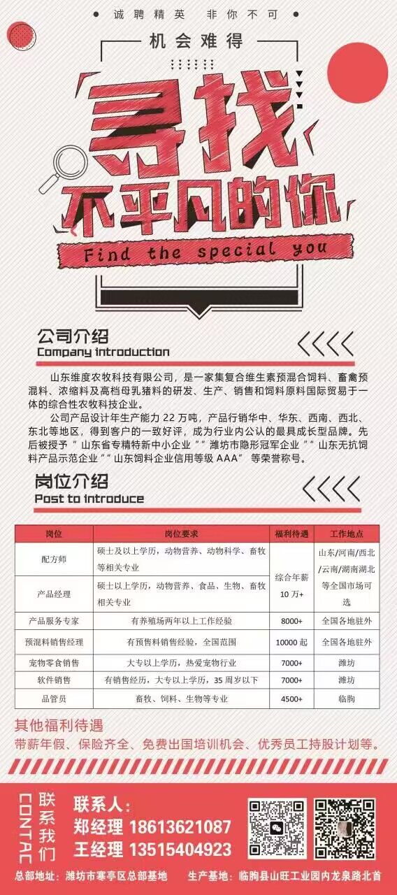 招聘专业:主要动医,动科,生技,销售