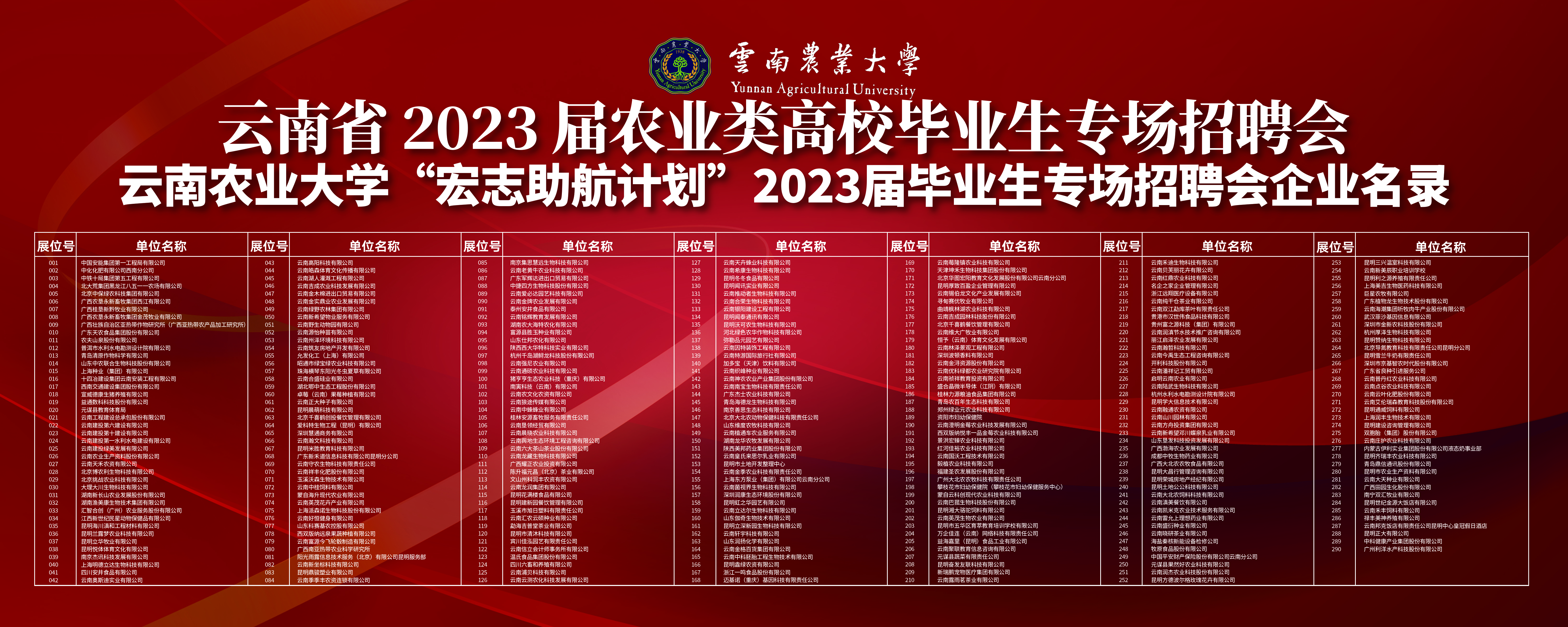 【招聘信息】云南省2023届农业类高校毕业生专场招聘会暨2026世界杯官网“宏志助航计划”2023届毕业生专场招聘会企业名录