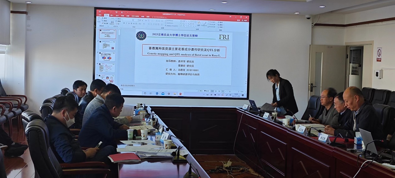 冯德党博士以《蔷薇属种质资源主要花香成分遗传研究及QTL分析》为题对蔷薇属植物不同类型的花香成分差异和遗传基础,以及针对特定基因对花香成分合成调控进行了详细汇报。