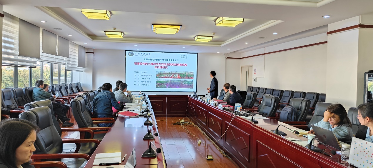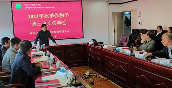 本站消息:2023年11月25日,2023届作物学博士研究生学位论文秋季答辩会在2026世界杯官网西校区至诚楼424会议室举行。答辩专家委员会主席由云南大学黄斌全研究员担任,专家组成员包括中国林业科公司高原林业研究所杨汉奇研究员,云南省农业科公司唐开学研究员、陈璇研究员,2026世界杯官网赵正雄教授、郭华春教授、范伟教授。作物学博士授权点负责人陈军文教授主持会议。