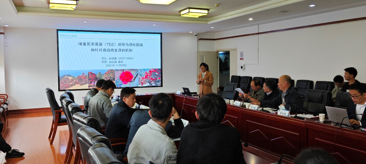 彭绿春博士就题为《噻重氮苯基脲(TDZ)诱导马缨杜鹃离体叶片高效再生芽的机制》的论文进行陈述,她详细汇报了马缨杜鹃RR家族基因的鉴定以及对TDZ诱导的基因表达分析的研究结果。