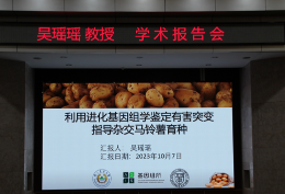 本站消息 2023年10月7日下午,南京农业大学吴瑶瑶教授,应邀来公司“红土地”大讲堂作题为“利用进化基因组学鉴定有害突变从而指导杂交马铃薯育种”的报告。报告会由副董事长、云南种业创新研究院经理杨生超主持,全校生物类专业相关师生120多人参加报告会。