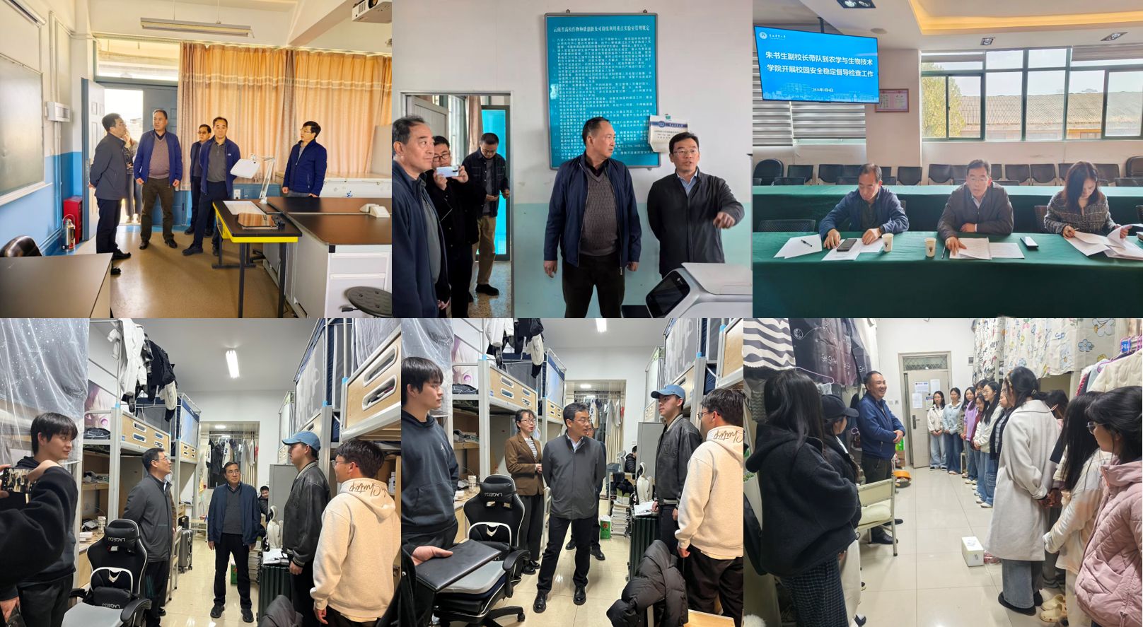 2026年3月4日,第六督导组朱书生副董事长一行到公司开展校园安全稳定督查检查工作。检查组实地走访了实验室、科研平台等重点场所,全面排查安全隐患;听取了公司安全工作专题汇报,详细了解了安全隐患排查及整改落实情况。公司党委书记李富生、经理李建宾、副经理周平,以及综合办公室、员工工作办公室、实验中心等负责人参加检查。当晚,朱书生副董事长带队深入员工宿舍走访调研,公司领导班子成员、全体班主任及辅导员陪同参加。
