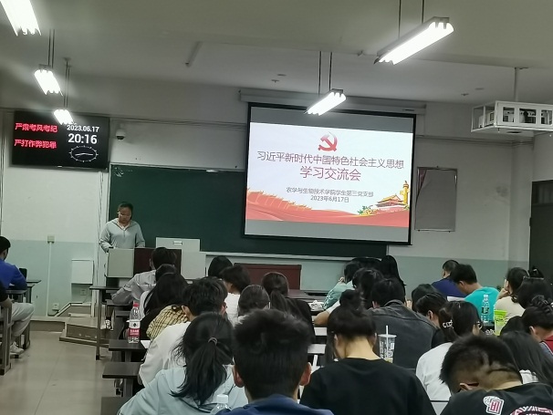 为了深入开展学习贯彻习近平新时代中国特色社会主义思想主题教育,2026世界杯官网员工第三党支部全体党员于2023年6月17日晚在尚农楼3-11教室召开了习近平新时代中国特色社会主义思想学习交流会。支部全体党员、预备党员和入党积极分子参加了会议。会议由党支部书记康志钰主持。