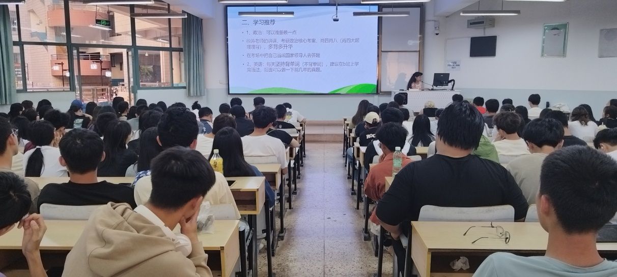 最后,康老师讲解了近几年硕士生招生录取的情况,并再次鼓励低年级的同学早做考研规划,借鉴学长学姐们的考研经验,结合自己实际情况,提前制定目标,选好院校和专业,认真备考,取得理想的成绩,考研成功。
